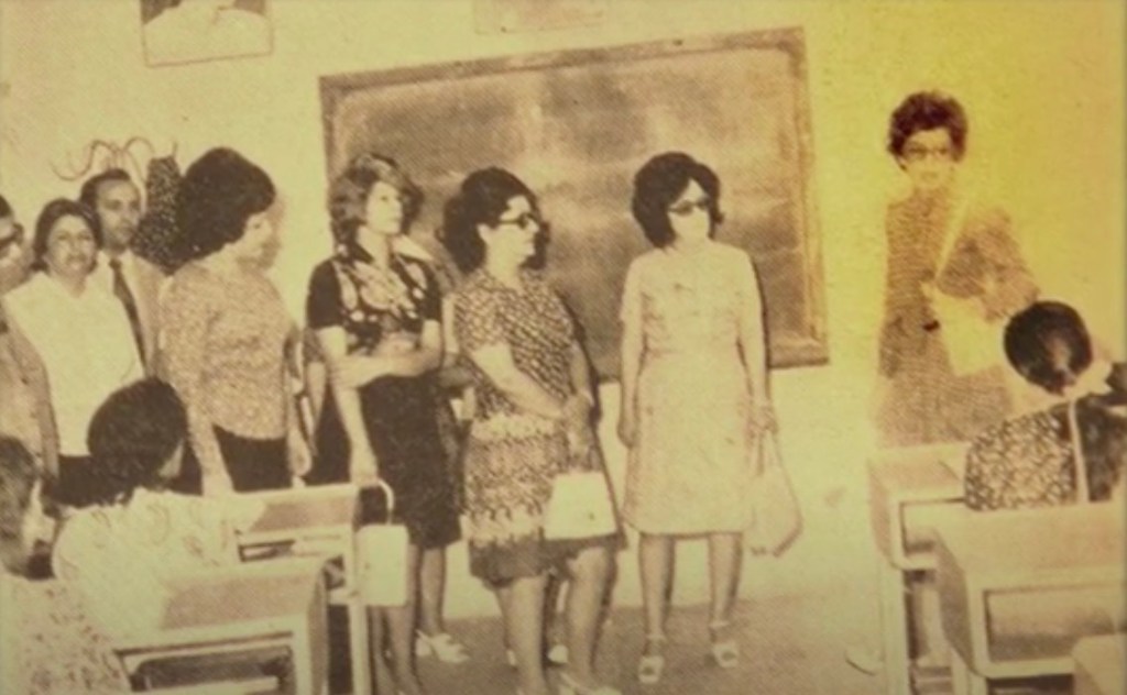 The above image is of a literacy class conducted by the Women’s Organization of Iran (WOI) in the 1970s. Iran’s Minister for Women’s Affairs from 1975-1978 and the WOI’s secretary general from 1970-1978, Mahnaz Afkhami, is seen on the right. The WOI was a national, state-sponsored organization that operated from 1963 to 1979. At its peak, the organization had a million members from across Iran. The women of the WOI took part in an annual general assembly to elect its board of directors and to develop annual plans of action. In 1975, it had 349 branches and 120 family welfare centers across Iran. The role of this organization in Pahlavi Iran directly challenges the popular assumption that the improved status of Iranian women under the Shah was merely “granted” by a modernizing, Western-oriented state. However, each legal change, each funding provision to women’s education, and each social reform was the result of lobbying and organization from this sophisticated and creative women’s movement (Afkhami 2022).
